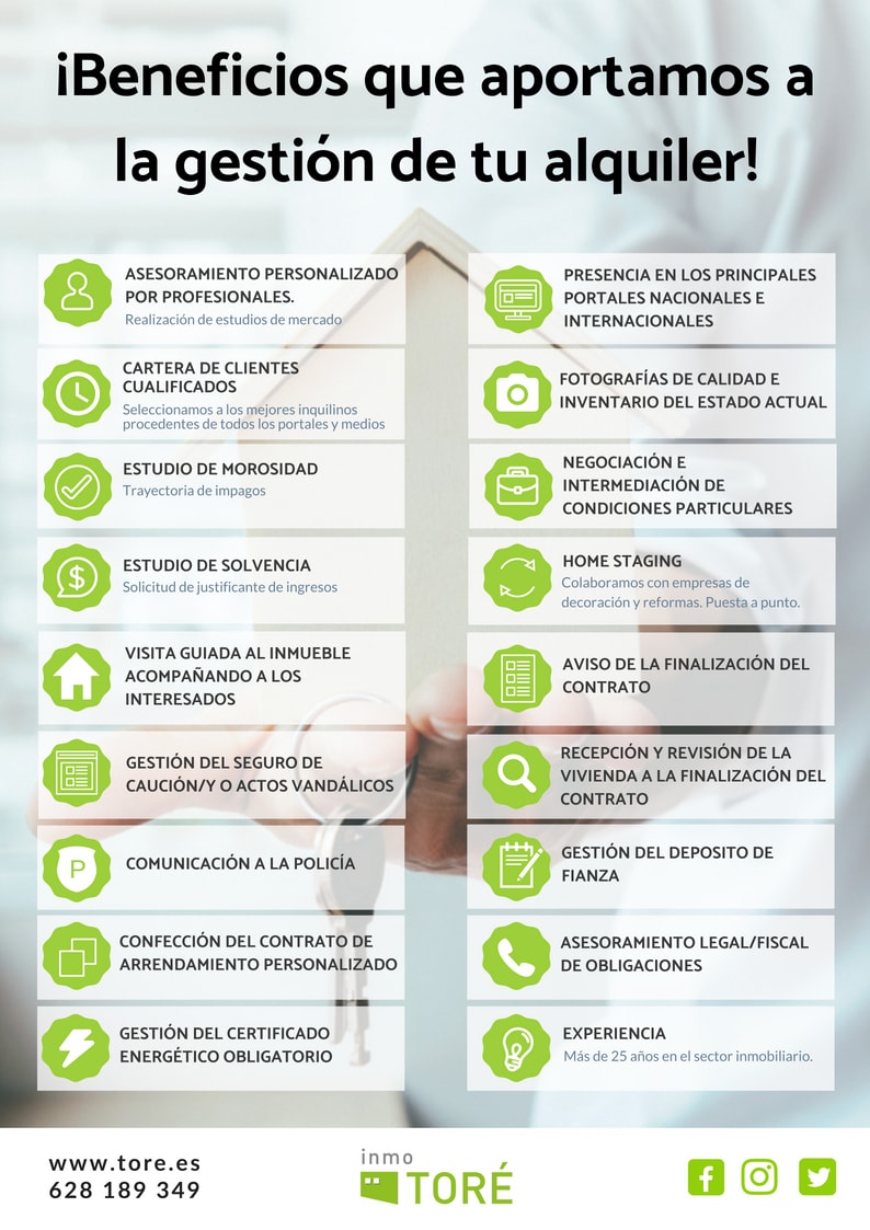 Por ello le vamos a comentar grandes beneficios que le aportará alquilar o dejar en nuestras manos la administración de la misma. Preste atención a continuación: